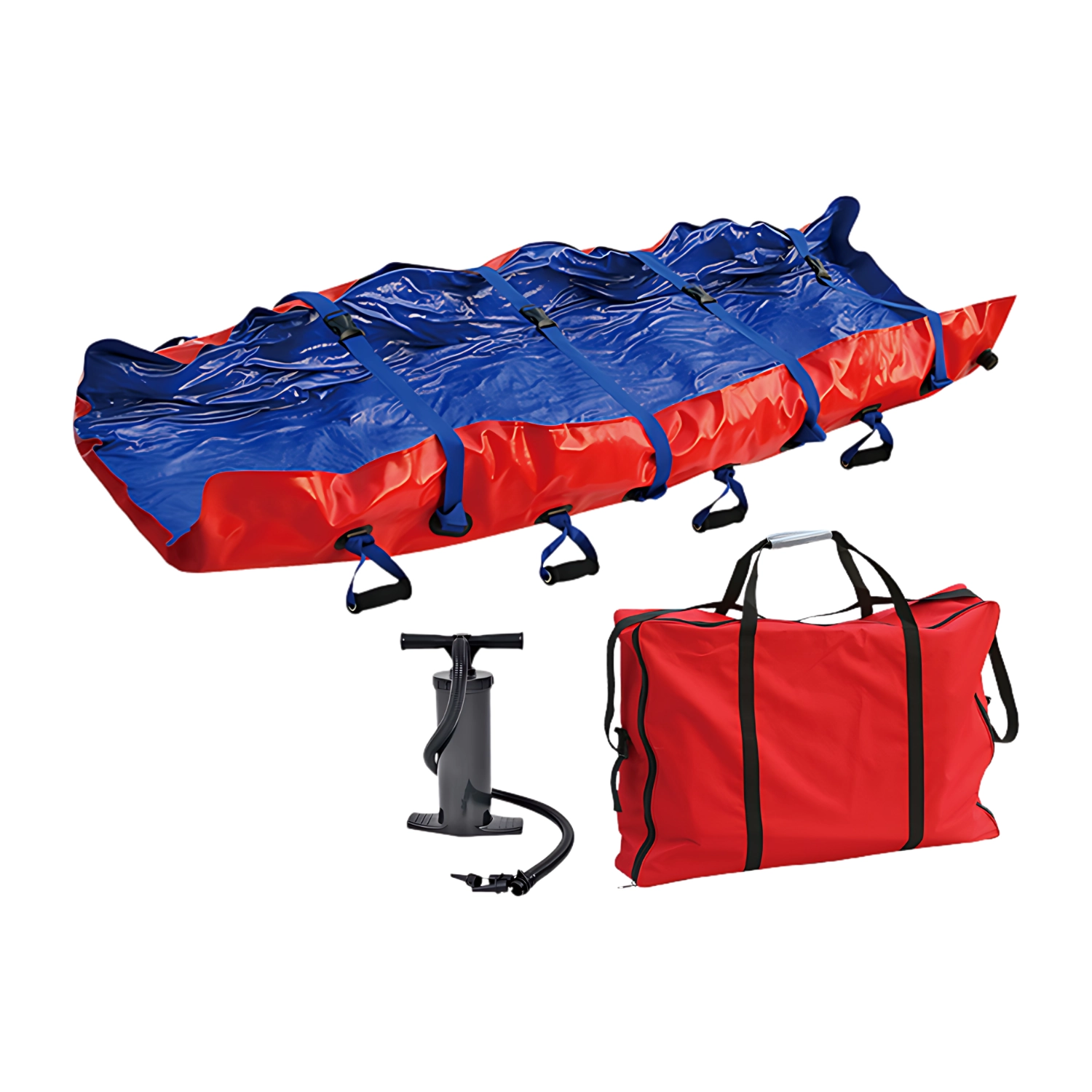 Saltea vacuum pentru imobilizarea și stabilizarea pacienților traumatizați, utilizată în ambulanțe și unități de primiri urgențe, cu pompă și geantă incluse.
